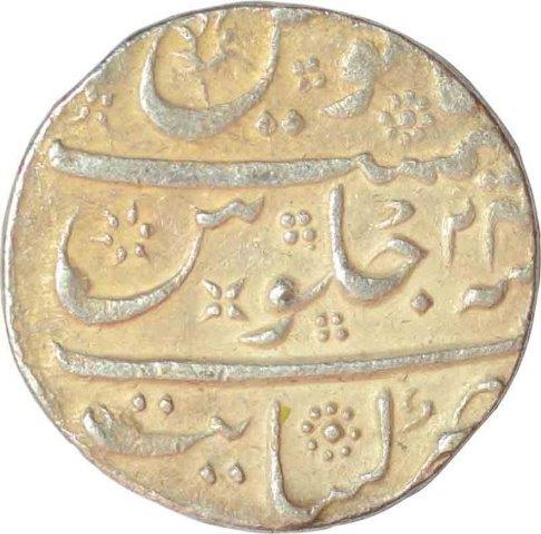 Aurangzeb Alamgir, Kambayat, Silver Rupee, 24 RY, Obv: badr munir couplet, Rev: sana julus zarb, 11.14g, 25.21mm, mint mark unlisted, about very fine.
