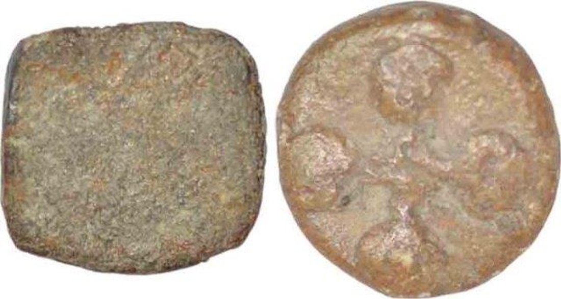 Satavahana Dynasty, Satkarni I (100 BC), Vidarbha Region, Lead Unit(2), Obv: lion facing to right, Rev: ujjaini symbol,set of two different shape varities, 1.14g, 0.71g, 8.59mm, 8.50X8.84mm, about fine.