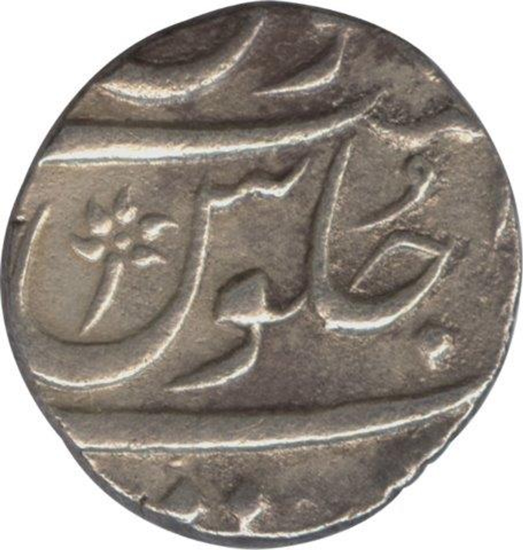 Muhammad Shah, Surat, Silver 1/2 Rupee, 11XX AH/4 RY, Obv: sikka mubarak badshah ghazi, Rev: sana julus zarb, wide flan rupee size, 5.80 g, 20.18 mm, (KM # 433.4), about extremely fine.