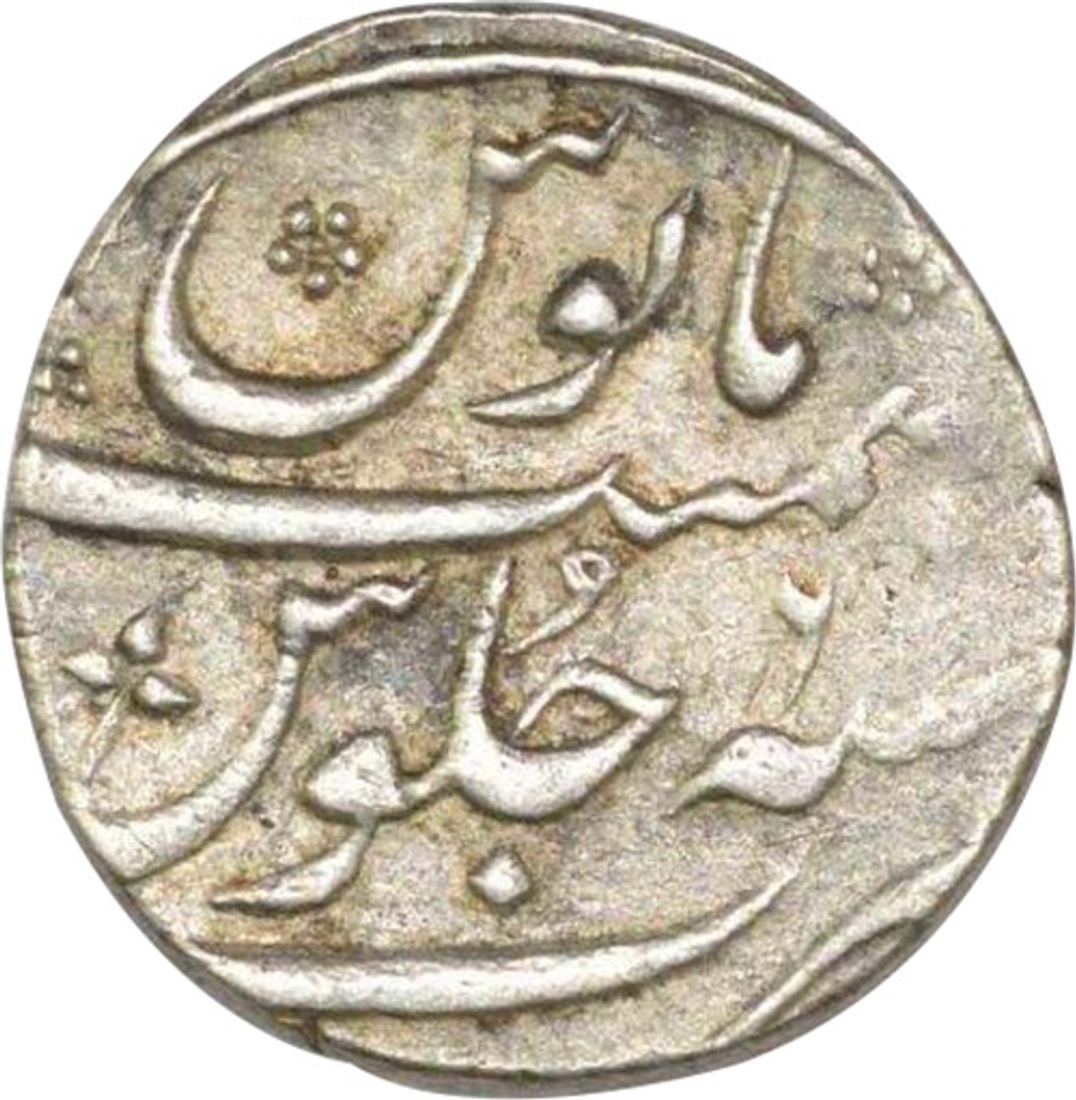 Muhammad Shah, Silver Rupee, Ruler name & mint Out of Flan, Obv: sikka mubarak badshah ghazi, Rev: sana julus zarb, 11.39 g, 24.83 mm, about fine.
