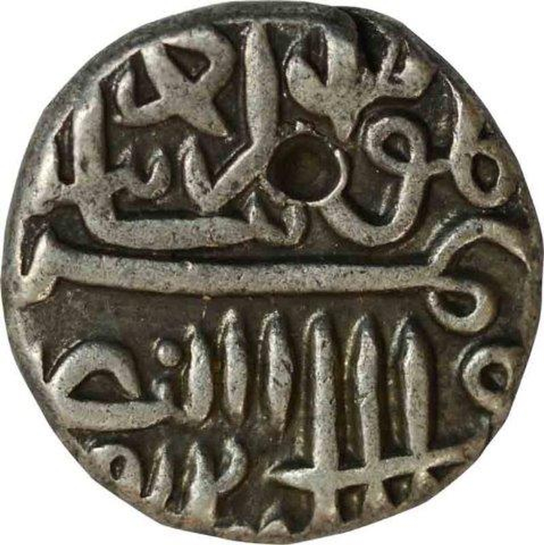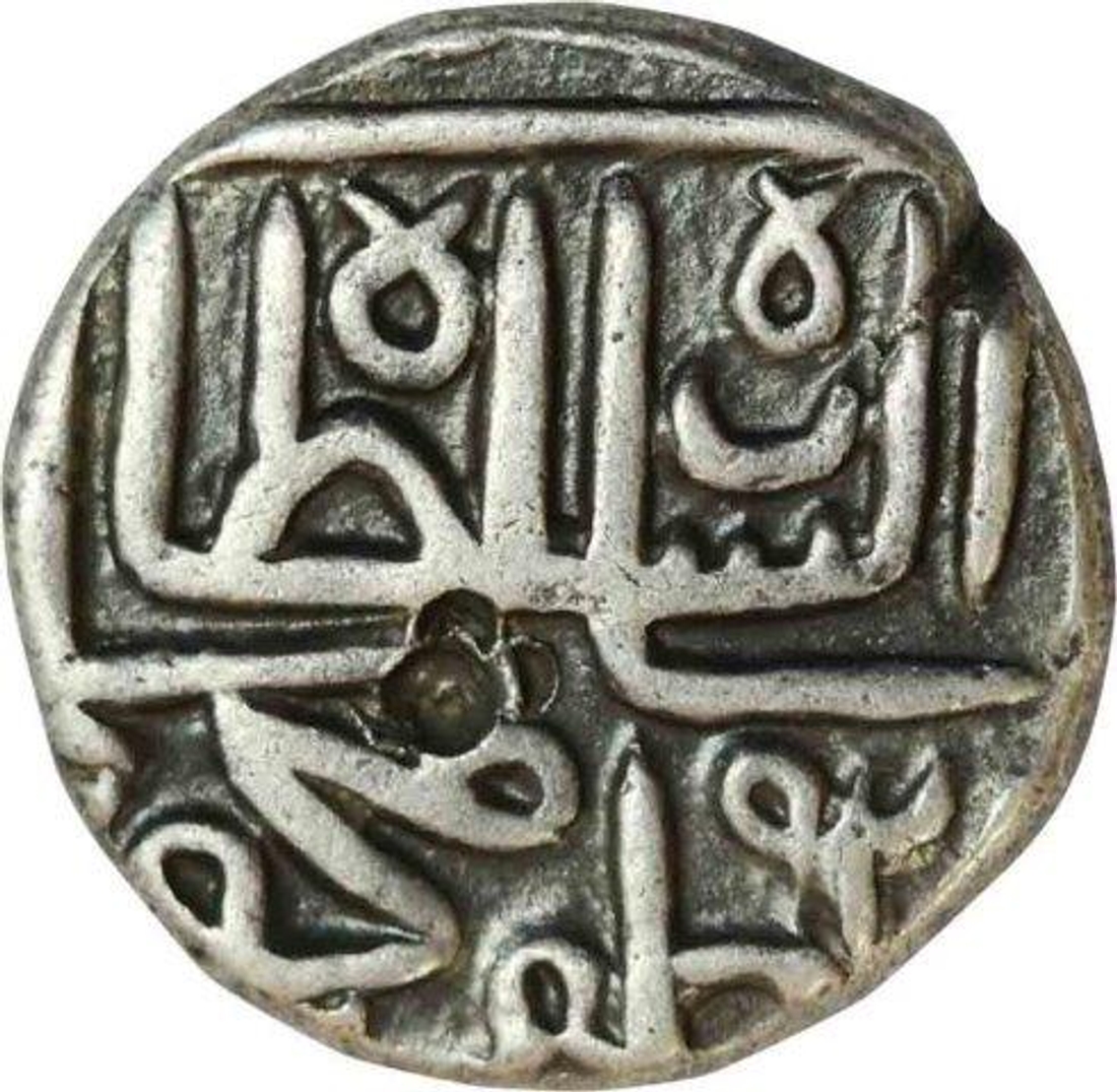 | Full Description: Gujurat Sultanat, Shams al-din Muzaffar II (AH717-732/1511-1525AD), Silver 1/2 Tanka, Obv: al-mu ‘ayyad legend, Rev:muzaffar shah shah bin Mahmud shah al-sultan khallada allah mulkahu within vestiges of peaked square within circle and dotted circle, (G&G# 250), 3.6g, 14.05mm, extremly fine, Scarce. | ||||