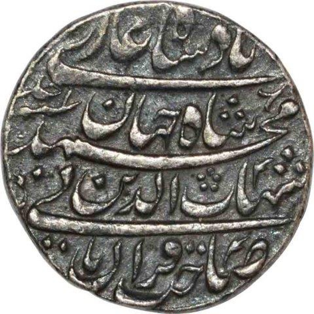 | Full Description: Shahjahan, Agra Dar-ul-khilafat, Silver Rupee, AH 1037 / Ahad RY, Obv: kalima shahada, zerb at bottom, Rev: saheb-e-qiran sani badshah ghazi, single tested mark, 11.50g, 22.73mm, (KM# 222.1), about extremely fine. | ||||