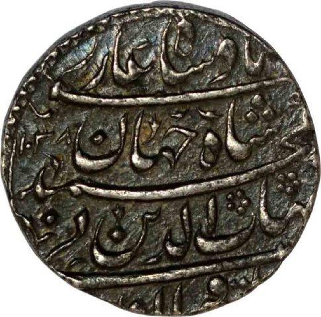 | Full Description: Shahjahan, Akbarabad Dar-ul-khilafat, Month Khurdad, Silver Rupee, AH 1038 / 2 RY, Floral Design Coin In Dotted Circle, Obv: kalima shahada, bottom zerb & month, Rev: saheb-e-qiran sani badshah ghazi, 11.50g, 22.69mm, (KM# 224.4), about extremely fine plus. | ||||