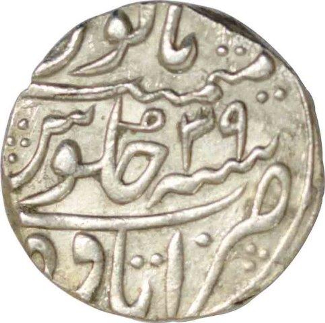 Aurangzeb,Itawa,Silver Rupee,AH 1107/39 RY, Obv: "badr munir" couplet, Rev: sana julus zarb at bottom,11.25gm,24.68mm,(KM# 300.39),about extremely fine.