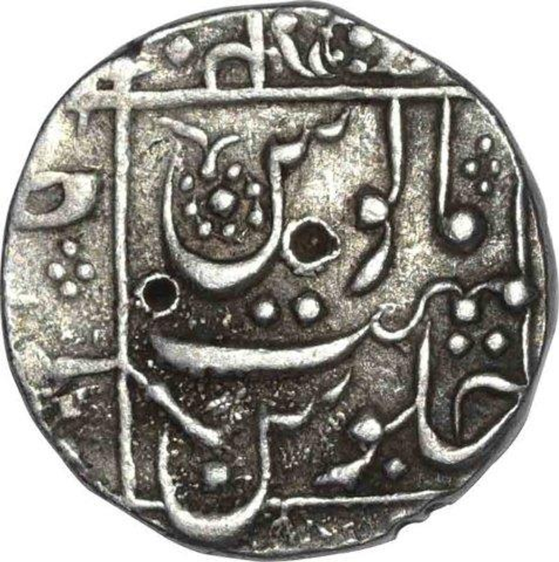 Aurangzeb Alamgir, Junagadh, Silver Rupee, Obv: "abul zafar" legend, Rev: sana julus zarb at left side, 11.55 g, 22.80 mm, unlisted type, about very fine.