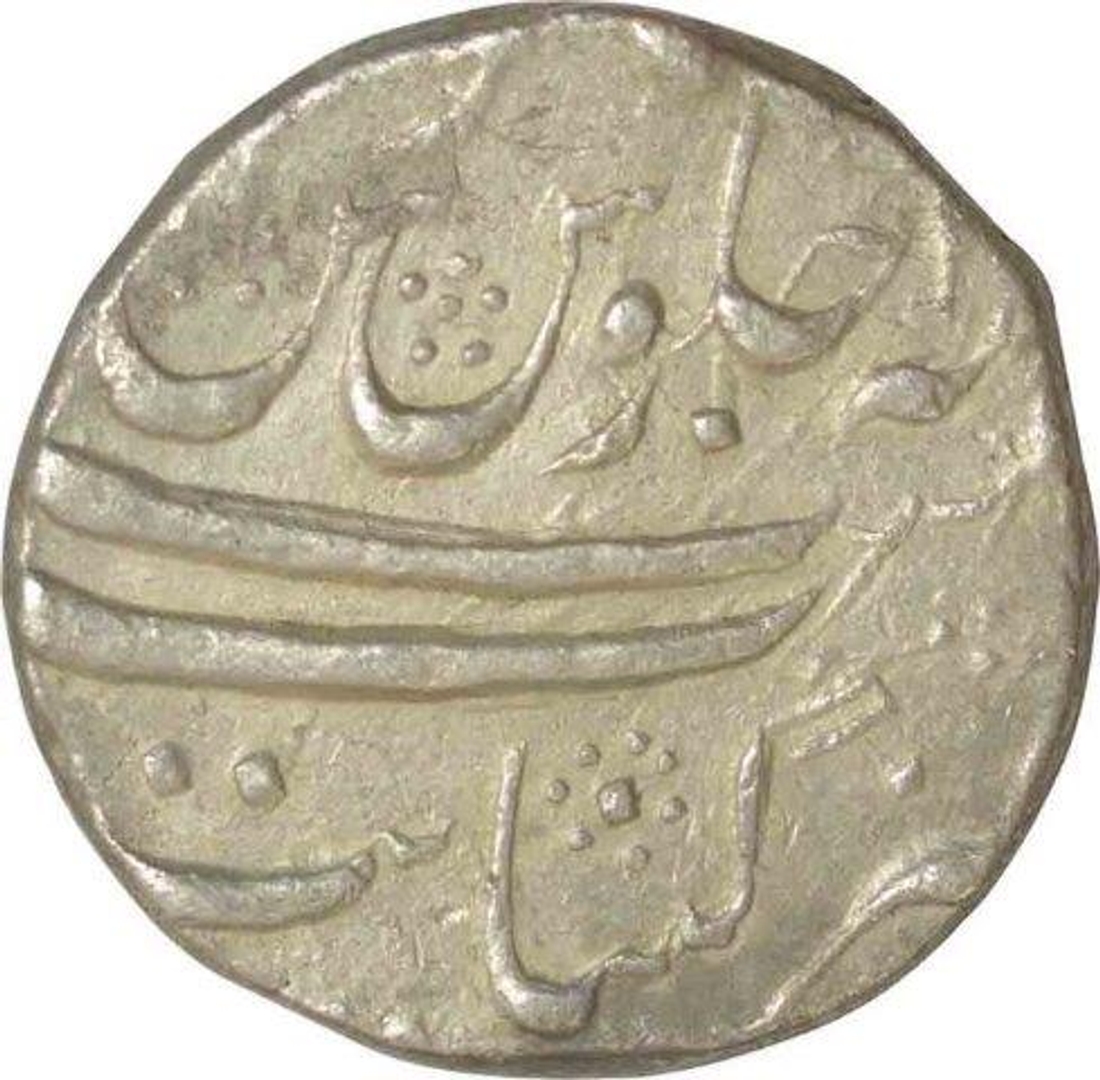 Shah Alam Bahadur, Kanbayat, Silver Rupee, Obv: sikka mubarak badshah ghazi, Rev: manus memanat sana julus zarb, 11.55 g, 23.53 mm, (KM # 348.23), about very fine.