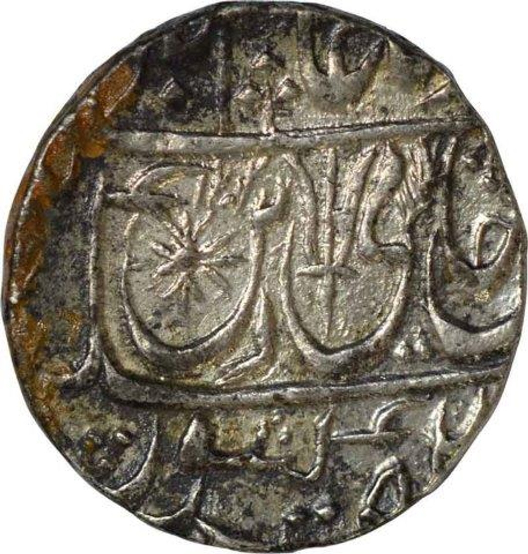 | Full Description: Ravishnagar Sagar, Silver Rupee, in the name of Shah Alam II, AH 1202/ 31 RY, Obv: saya-e-fazle elah couplet, Rev: sana julus zarb at bottom, 11.15gm, 22.17mm, Mint Mark Unlisted, about very fine. | ||||