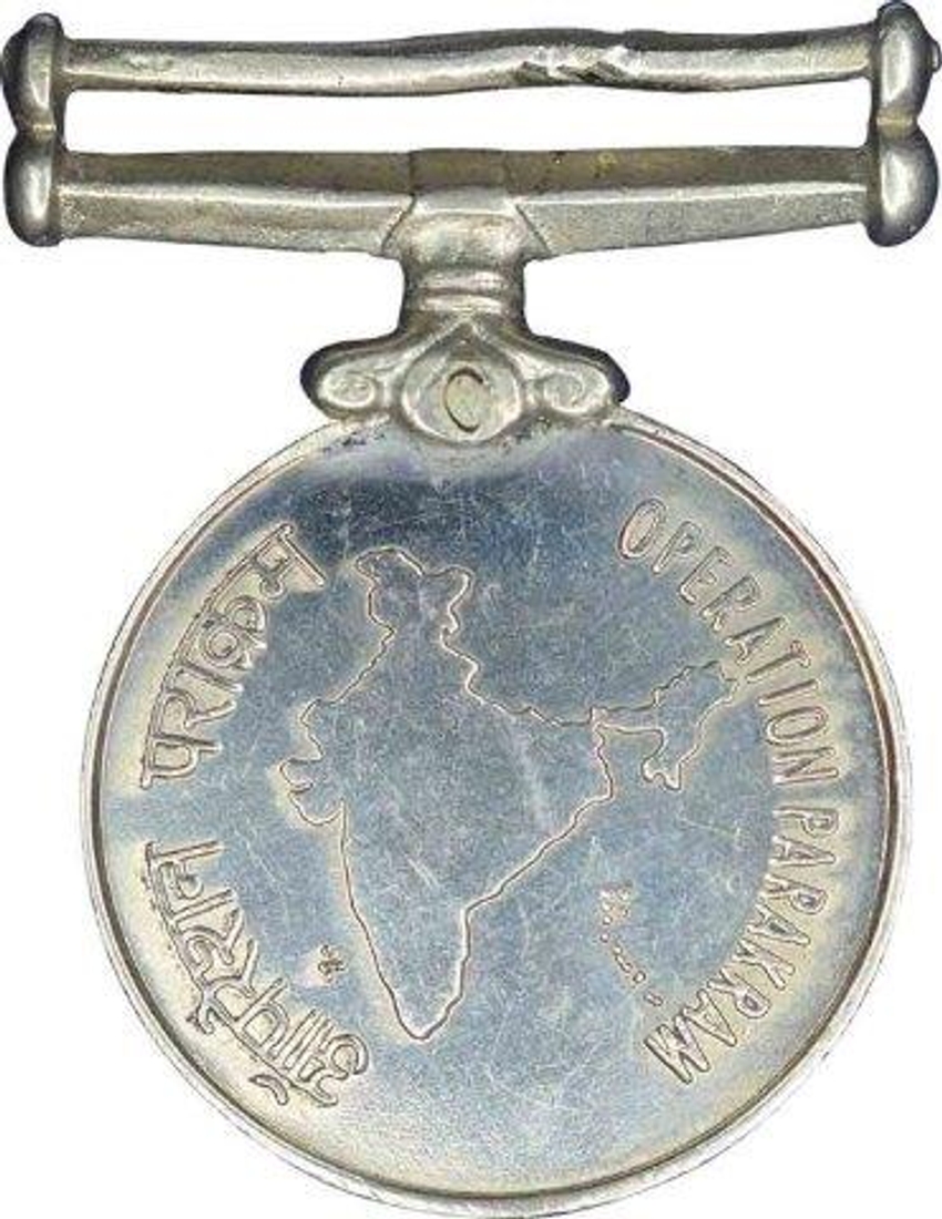 Circular Copper-Nickel medal with bar and clasp suspension, Obv: the face a relied map of india, circumscribed ‘operation parakram’ in hindi characters to the left and in capital latin characters to the right, Rev: the ashokan lions above the indian national motto (satyameva jayate = truth alone prevails); unattributed as issued; on original ribbon, the medal was instituted by the president of india on 20 august 2001 to be awarded to those involved in operation parakram, 34.60g, 35.38mm, about extremely fine.