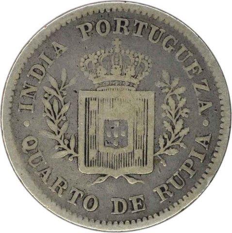 India-Portuguese, Luis I, Silver 1/4 Rupia, 1881, Obv: head to left, Rev: crowned arms within sprays, 2.65g, 19.28mm, (KM# 310), about very fine.