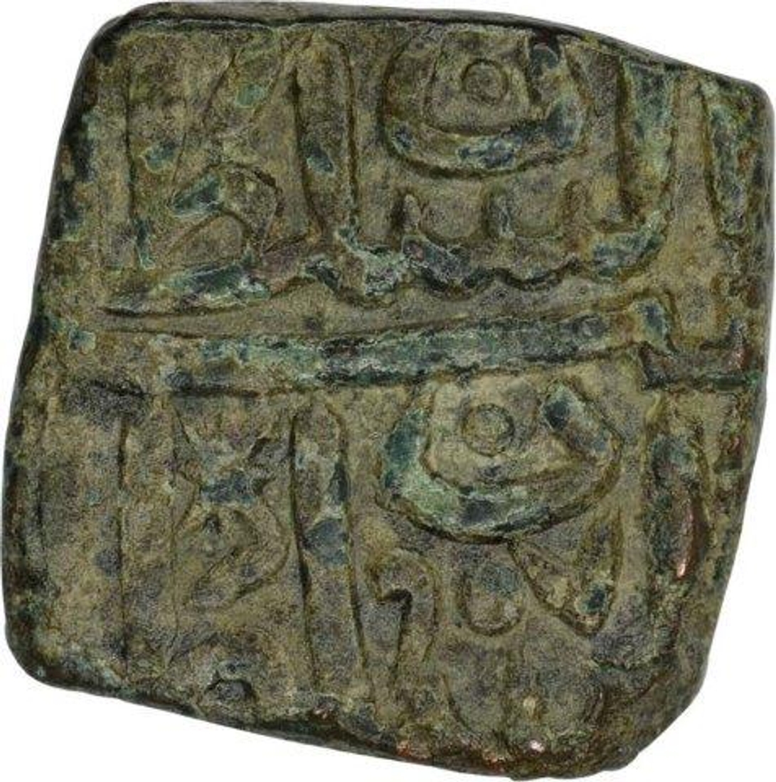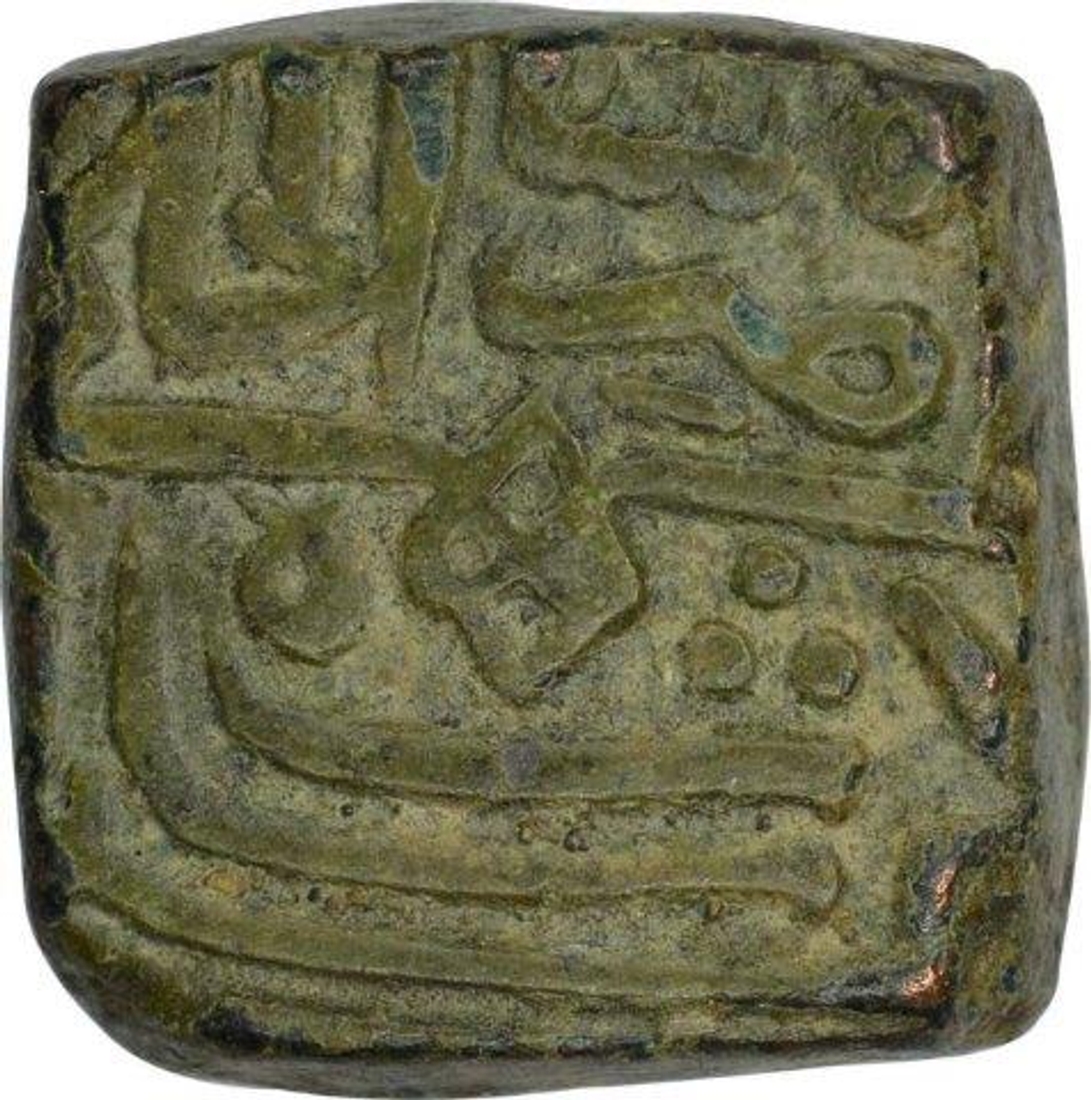 | Full Description: Malwa Sultanate, Nasir Shah, Copper Fulus, AH 907, Obv: nasir shah al-khalji bin ghiyath shah. with knot design in center, Rev: al-sultan bin al-sultan, 10.70g, 17.77 x 18.10mm, (G&G # M143), about extremely fine. | ||||
