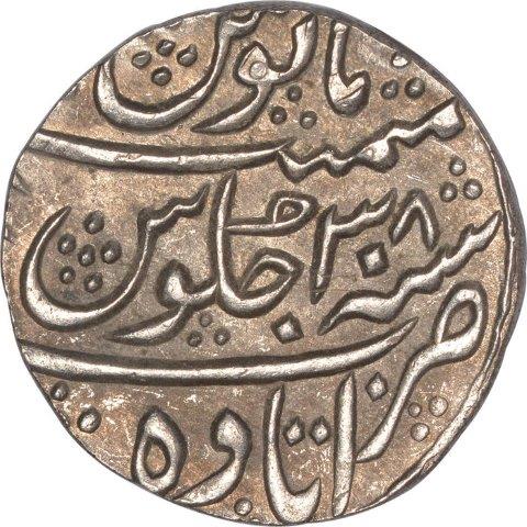 | Full Description: Aurangzeb Alamgir, Itawa Mint, Silver Rupee (6), Lot of Six Coins, AH 1105 (3) & 1106 (3) / 38 RY, Obv: "badr munir" couplet, Rev: sana julus zarb, 11.50g each approx, 27.38mm each approx, (KM # 300.39), about extremely fine. | ||||