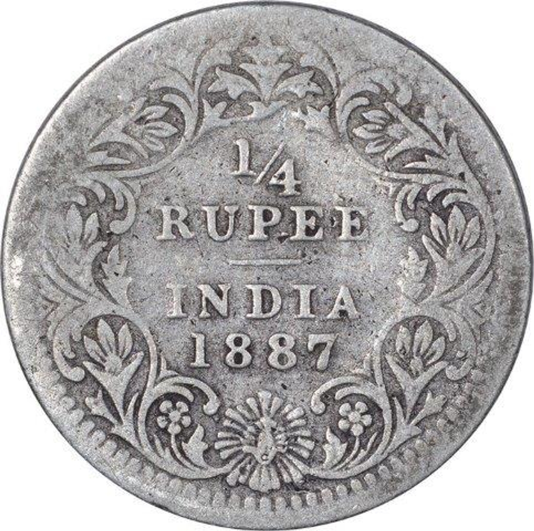 Lot # 1148 - Silver Quarter Rupee Coin of Victoria Empress of Calcutta Mint of 1887
