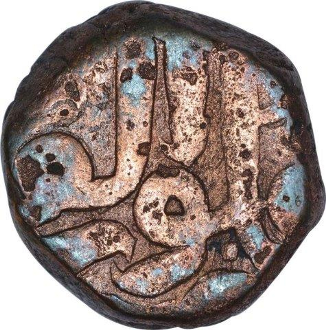 Akbar, Alwar Mint, Copper Dam, Fi Tarikh Type, Obv: hijri year in numerical and in words, Rev: fulus alwar, 19.52g, 21.71mm, (KM # 28.7), about good.