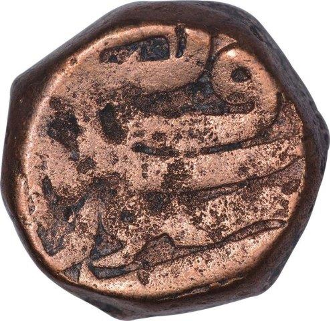 Copper Dam coin of Akbar of Chittor mint. Copper Dam coin of Akbar of Chittor mint.