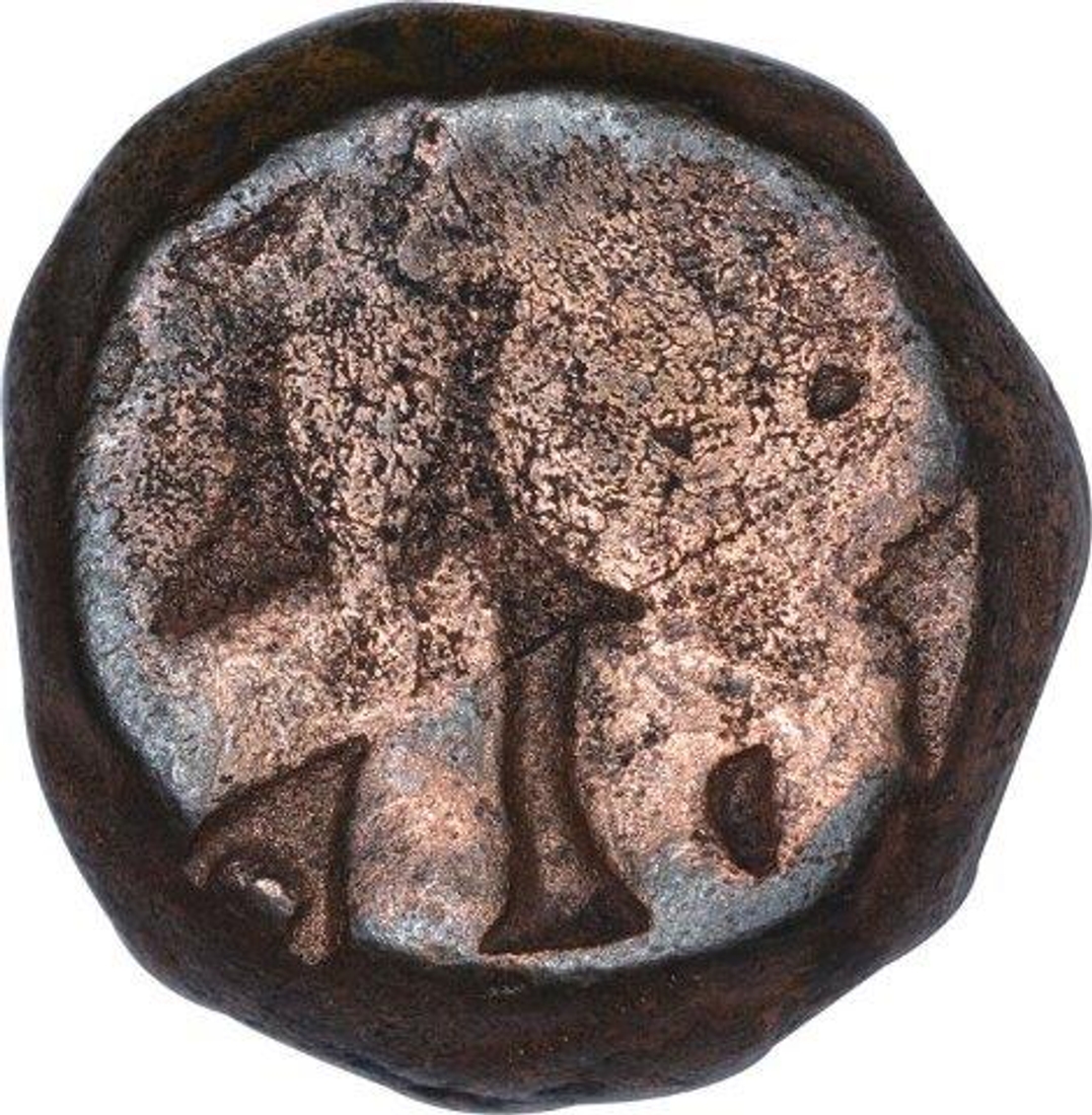 Lot # 362 - Copper Dam Coin of Akbar of Narnol Mint of Fi Tarikh Type.