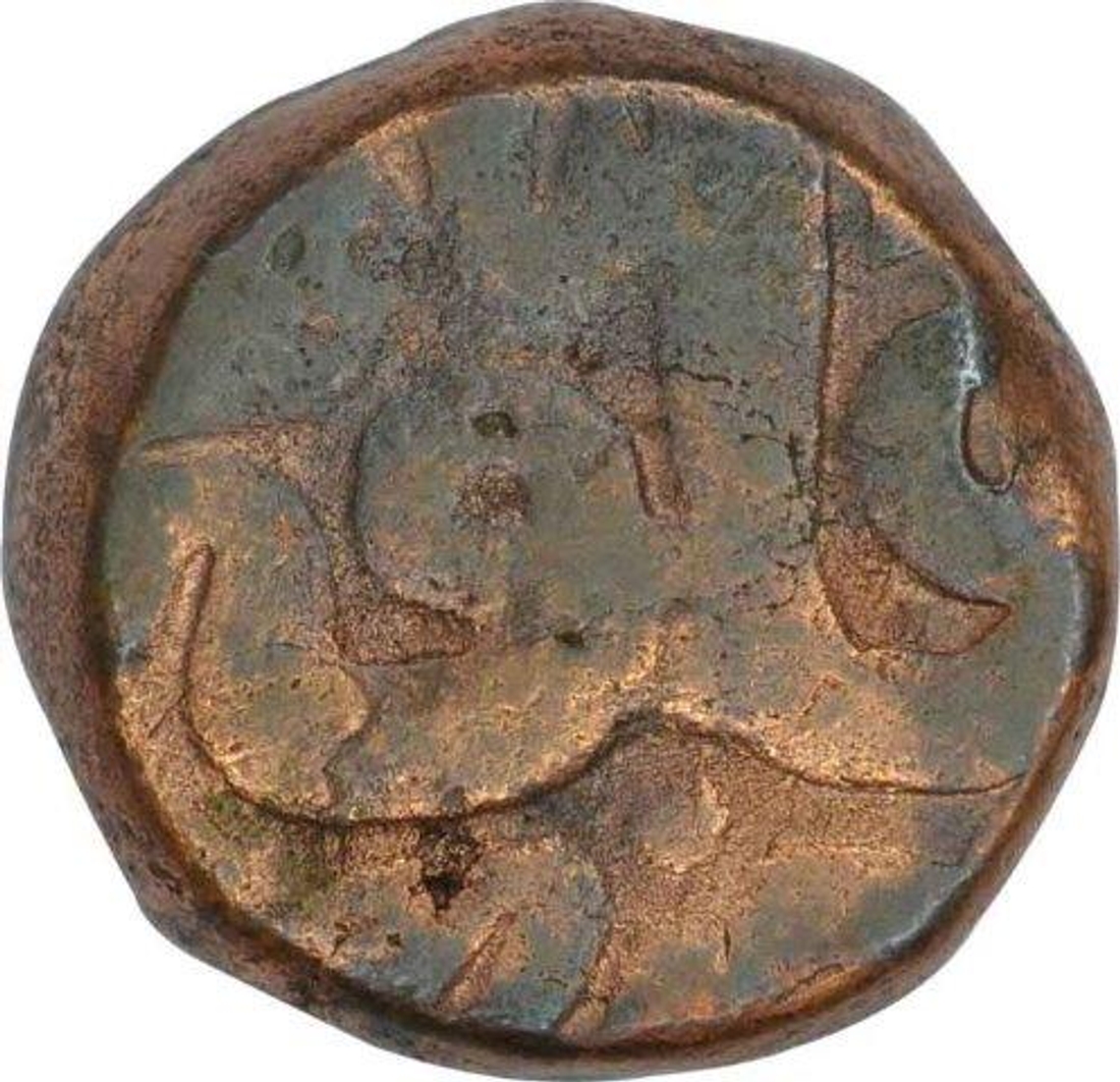 Copper Dam Coin of Akbar of Narnol Mint of Fi Tarikh Type. Copper Dam Coin of Akbar of Narnol Mint of Fi Tarikh Type.