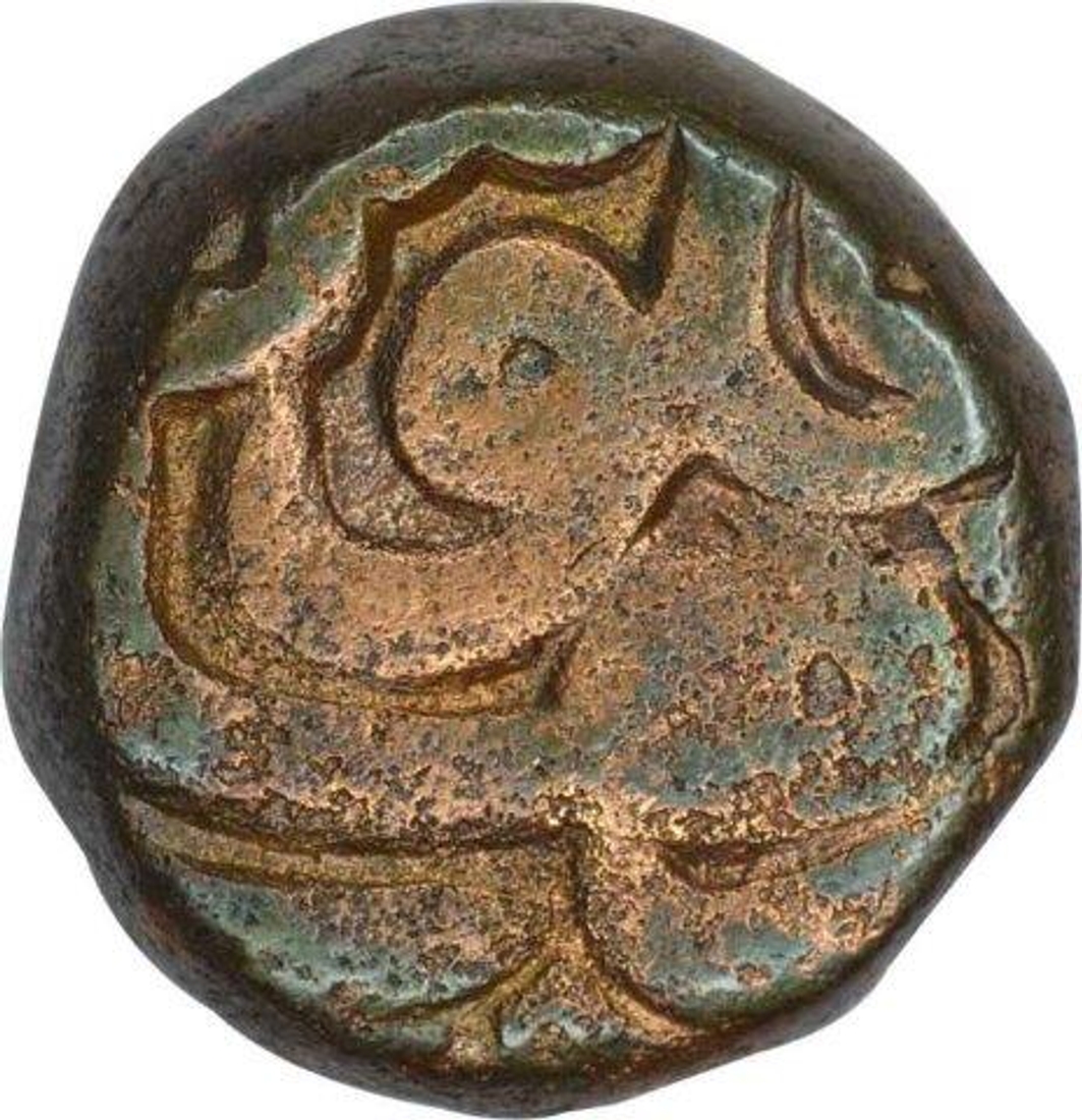 Akbar, Delhi Mint, Copper Dam, Ardibitisht Month, 4X RY, Obv: elahi date and persian month, Rev: fulus delhi, 20.20g, 19.92mm, about very fine.