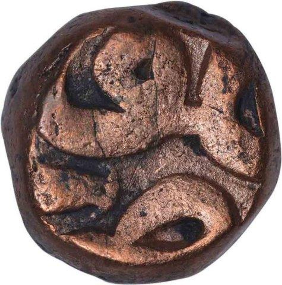 Akbar, Copper Dam, Narnol, AH 1006, Fi tarikh type, Obv: hijri year in numerical and in words, Rev: zerb, 20.51g, 17.25mm, about very fine.