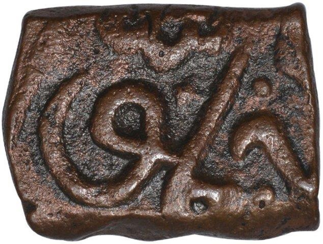 Akbar, Malwa Issue, Copper Square Tanka, Provencial issue of Malwa Region, Obv: persian legend, star mint mark, Rev: persian julus, 6.60g, 17.10x12.85mm, about extremely fine.