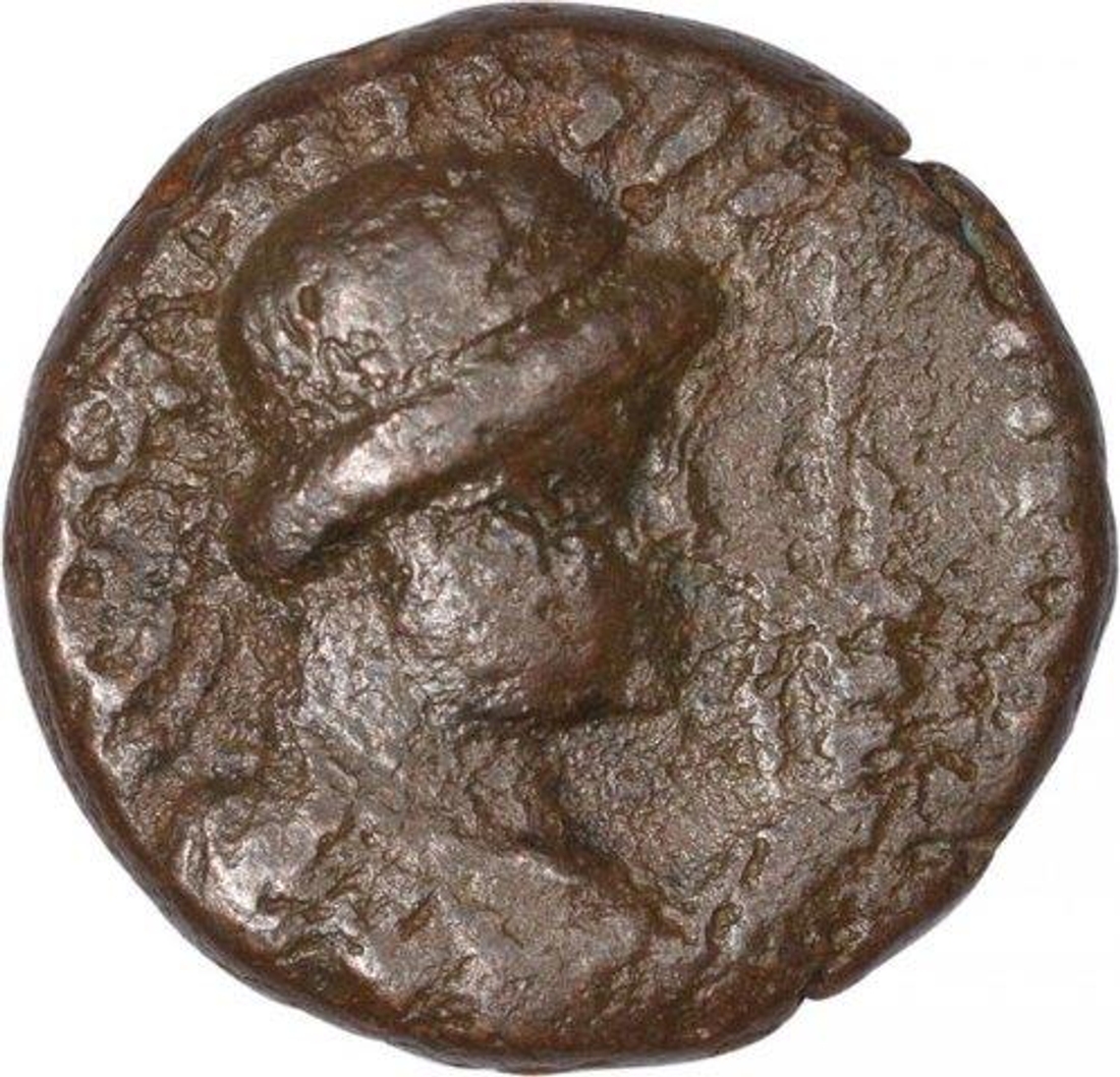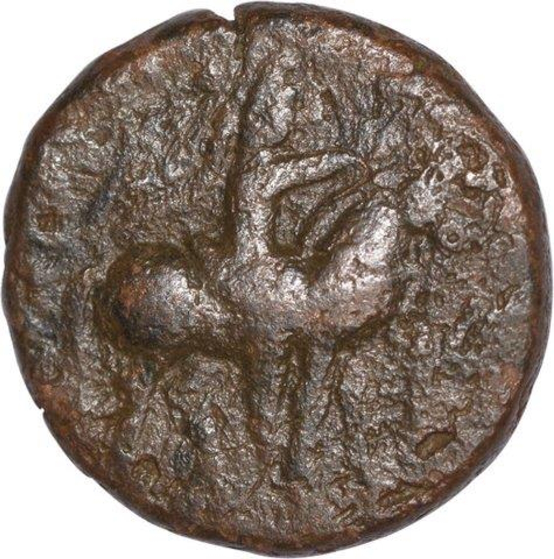 Kushan Dynasty, Soter Megas, alias Wima Takto (80-100 AD), Copper Drachama, Obv: king facing right, Rev: king mounted on a Horse, 1.95g, 12.42mm, about fine.