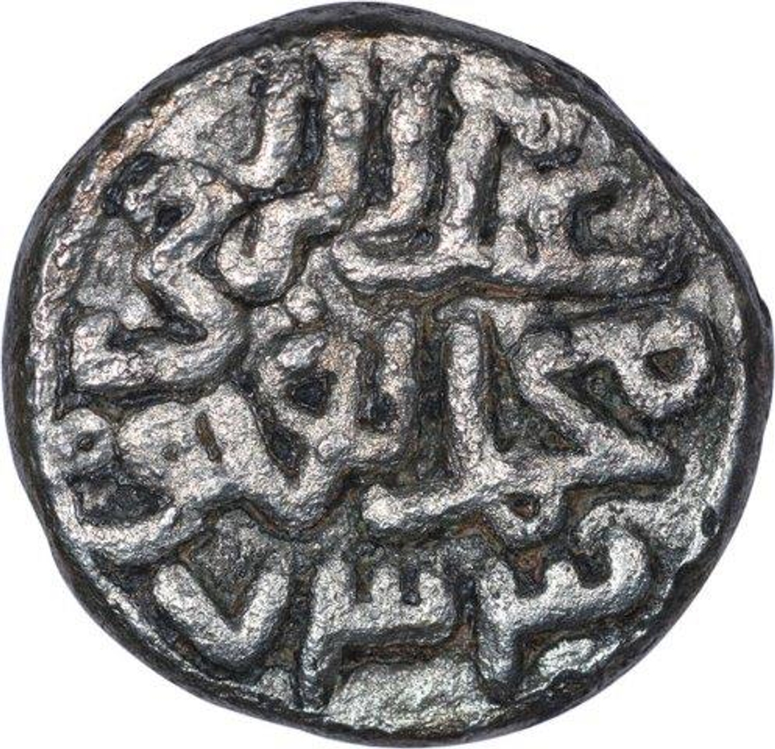 | Full Description: Delhi Sultanate, Tughluq Dynasty, Muhammad Bin Tughluq (AH 725-752/1325-1351 AD), Billon 6 Gani, AH 733, Obv: al-mulk wa‘l azamata llah (the kingdom and the greatness belong to allah), Rev: abd al-raji muhammad bin tughluq, (G&G # D379), 3.05g, 14.35mm, about extremely fine. | ||||