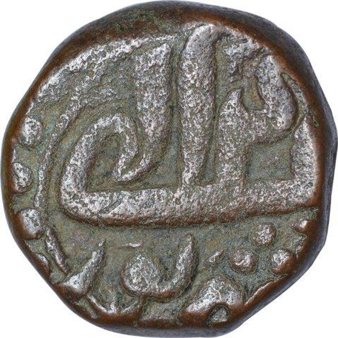 | Full Description: Akbar, Bairata Mint, Copper Dam, Month Shahrewar, Obv: tanka akbar shahi at the top, with mint name bairata and neem at the bottom, Rev: ilahi year at top 4X and the month of issue shahrewar at the bottom, 20.50g, 22.97mm, (Andrew Liddle, Type C-38), about extremely fine. | ||||