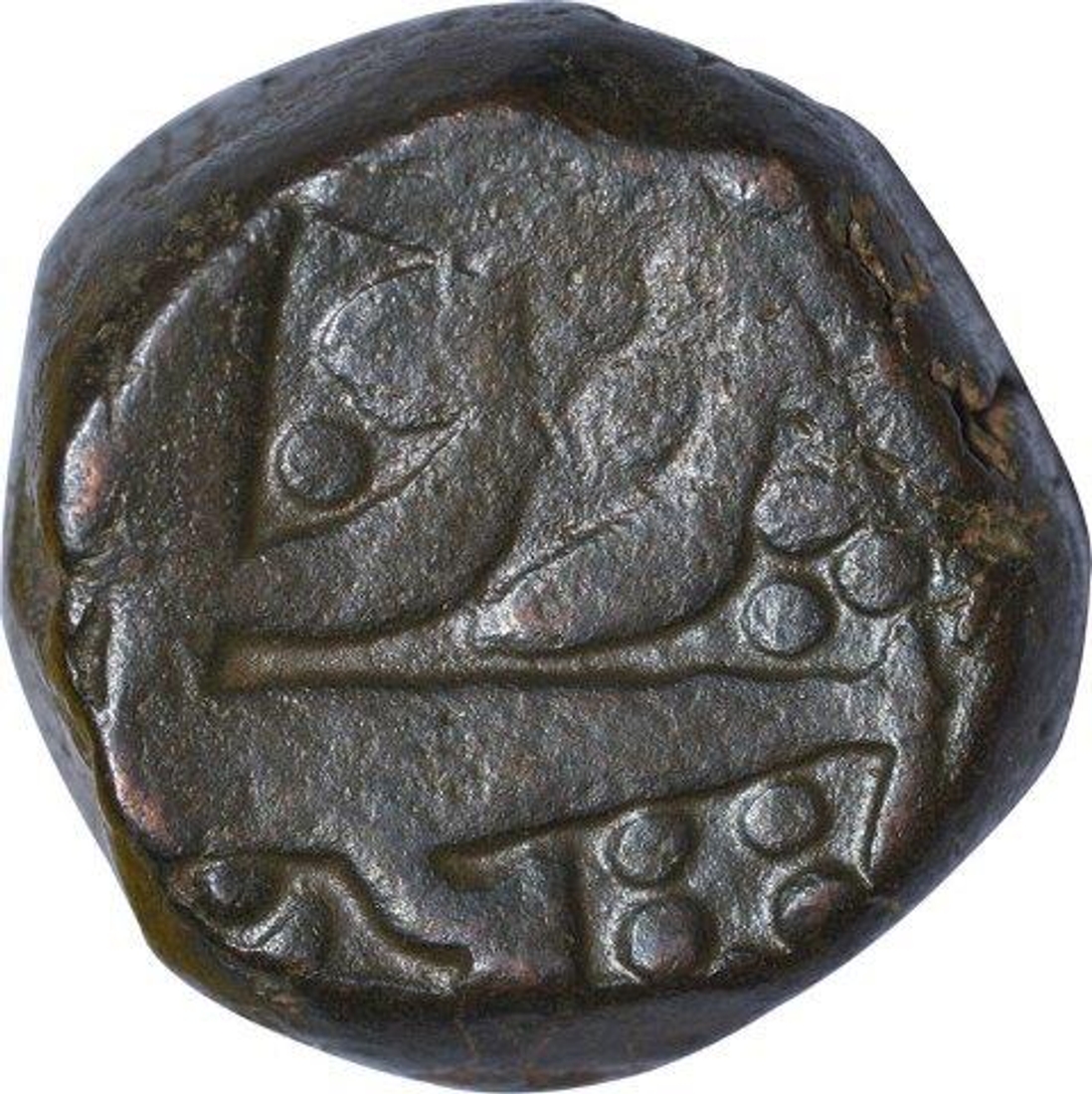 Akbar, Bairata Mint, Copper Dam, Rawani Couplet, Obv: date top(off flan), mint name bottom, Rev:“rawani” top and sanah 6 bottom, 20.80g, 20.07mm, about very fine.