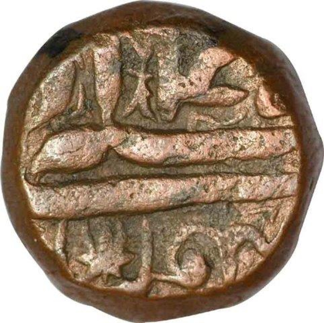 | Full Description: Akbar, Berar Mint, Copper Dam, Bahman Month, Ilahi 45, Obv: zarb & falus and mint name ‘berar’ on top, Rev: ilahi year 45 at the top and ilahi month pesian at the bottom, 20.36g, 21.41mm, about extremely fine. | ||||