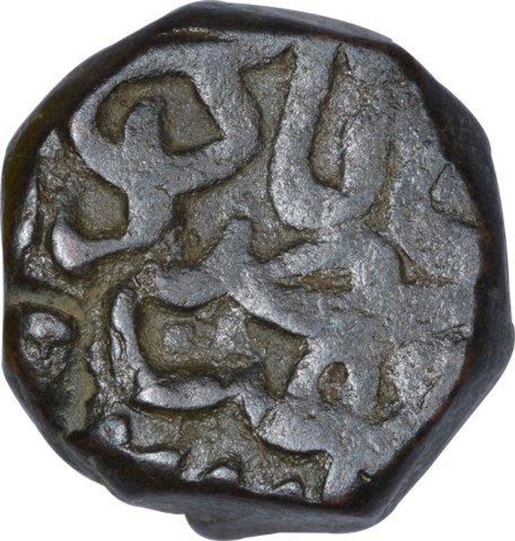 Akbar (AH 963-1014/1556-1605 AD), Copper Dam, Hazrat Dehli Mint on Top, fi tarikh type, 20.90g 19.17mm, about extremly fine.