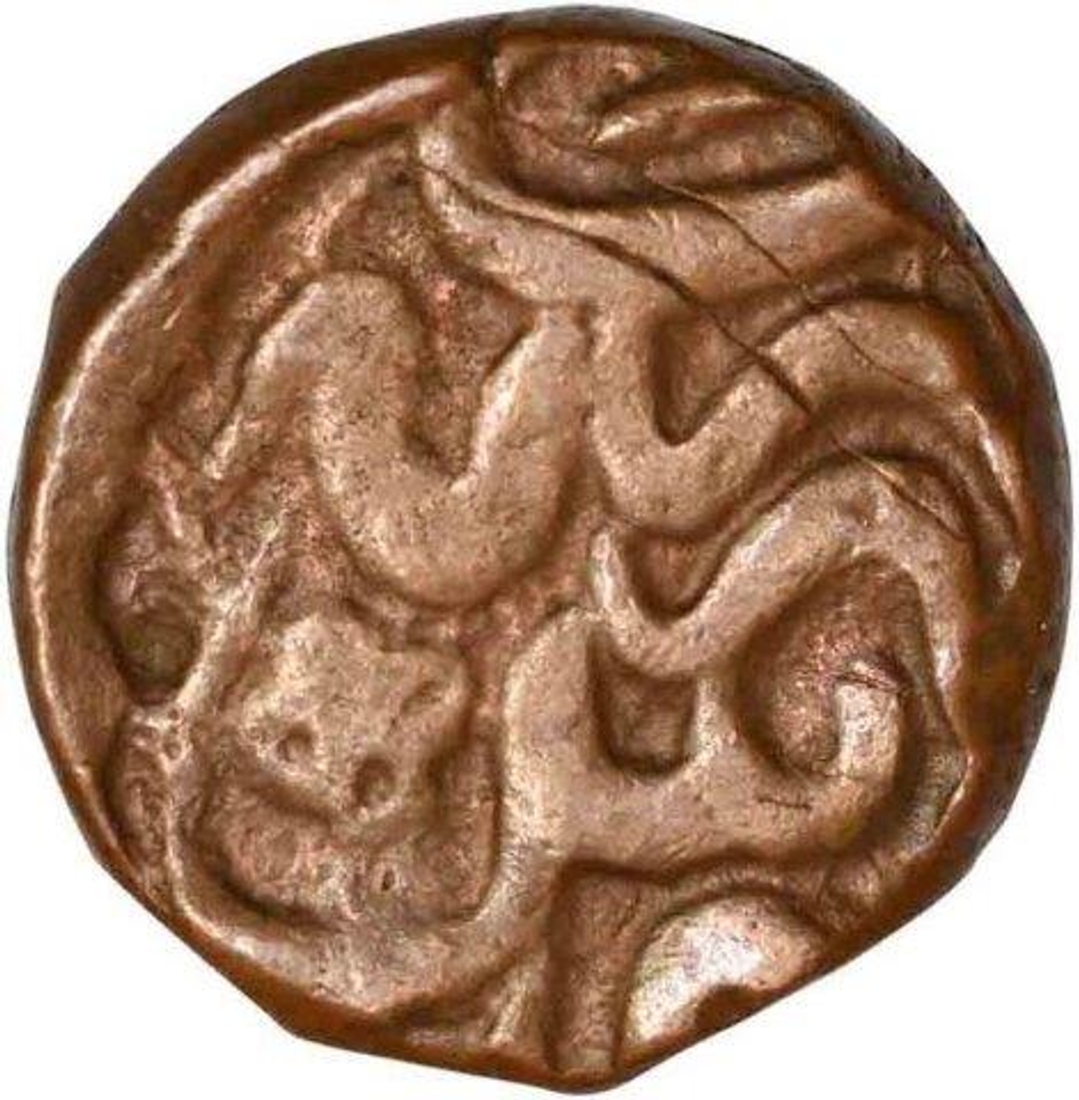 | Full Description: Akbar, Merta (Mirath) Mint, Copper Dam, AH 988, Obv: fi-tarikh usually in the lower portion with the date in numerals at the bottom and in words at the top, Rev: zarb & falus, mint name‘merta’ on top, 20.03g, 22.44mm, (KM # 28.4), about very fine. | ||||