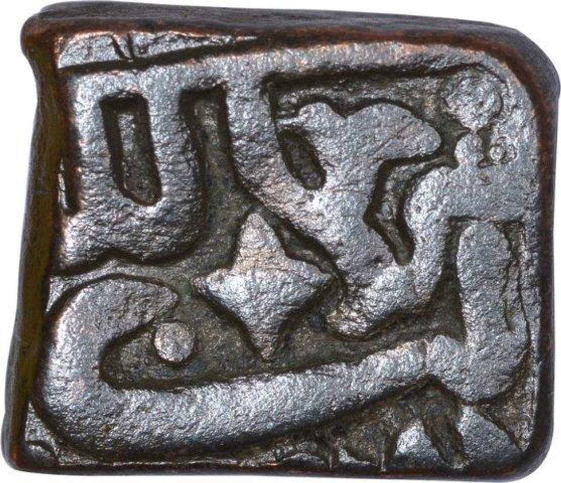 Akbar (AH 963-1014/1556-1605 AD), Copper Falus, Malwa Issue, Obv: king title , Rev: persian legend, 6.75g, 13.26 X 11.36mm, about extremely fine.