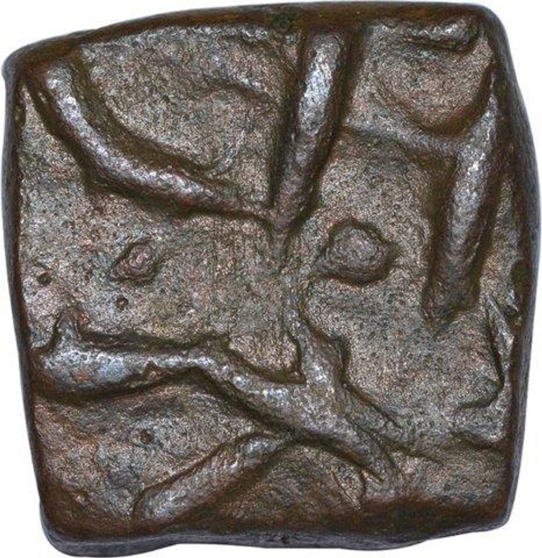 Akbar (AH 963-1014/1556-1605 AD), Copper Falus, Malwa Issue, Corrupt persian legend on both Sides, 5.05g, 13.77X14.01mm, about extremely fine.