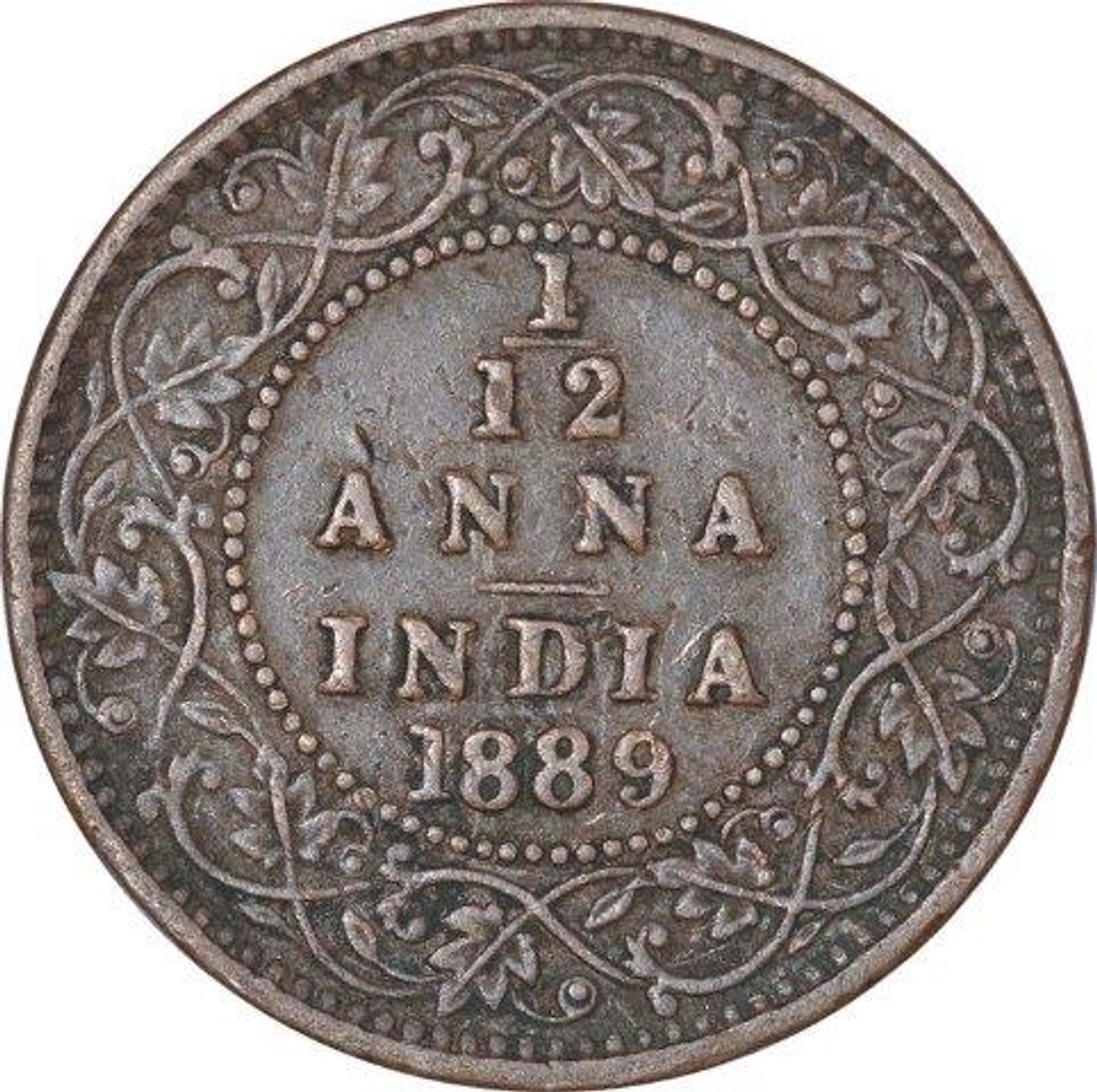 1889, Victoria Empress, Copper 1/12 Anna, Bombay Mint, 17.74mm Bust/A, (PR # 816), about extremely fine.