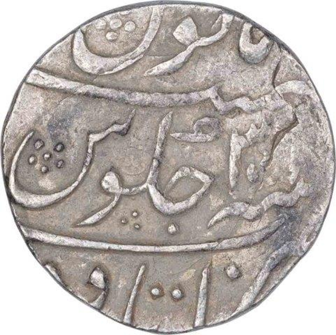 Aurangzeb Alamgir, Itawa Mint, Silver Rupee, Broad Flan, AH 1104/30 RY, Obv: "badr munir"couplet, Rev: sana julus, zarb at bottom, 11.60g, 27.49mm, (KM # 300.39), about very fine.