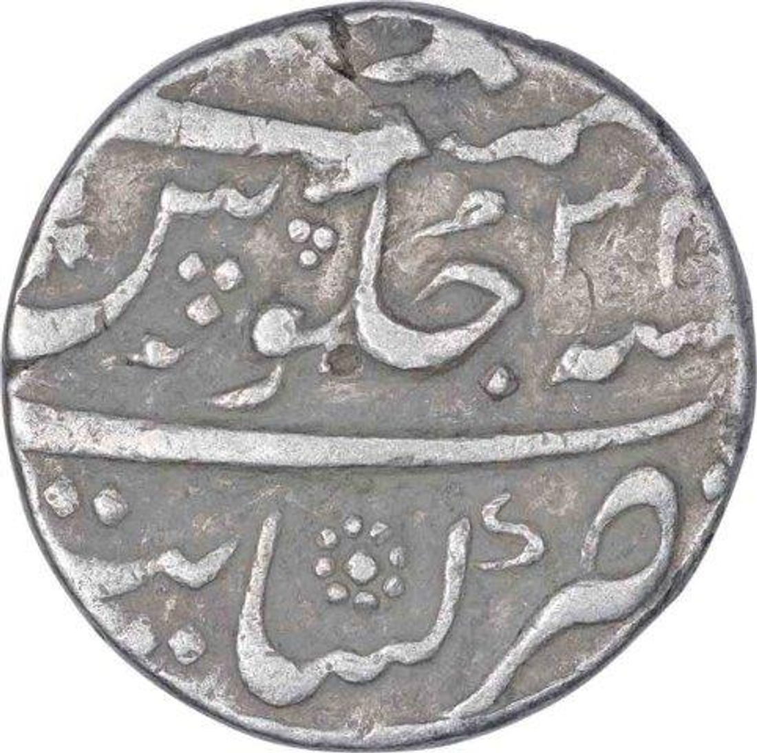 Aurangzeb Alamgir, Kanbayat Mint, Silver Rupee, AH 1103/34 RY, Obv: "badr munir" couplet, Rev: sana julus zarb at bottom, 11.70g, 21.94mm, (KM # 300.51), about very fine.
