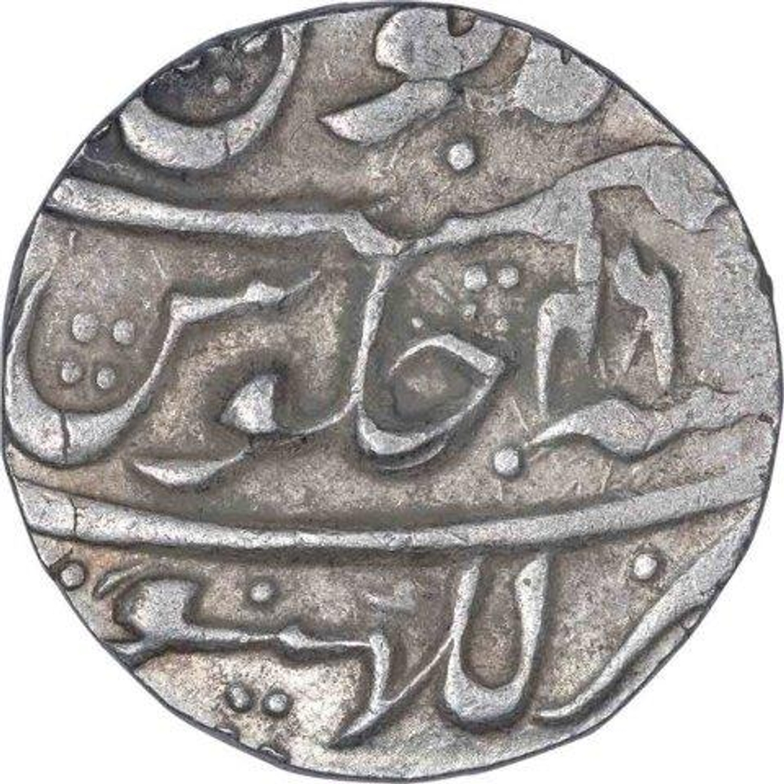 Aurangzeb Alamgir, Lakhnau Mint, Silver Rupee, 46 RY, Obv: badr munir couplet, Rev: sanah julus zarb at bottom, 11.60g, 24.70mm, (KM # 300.54), about very fine.