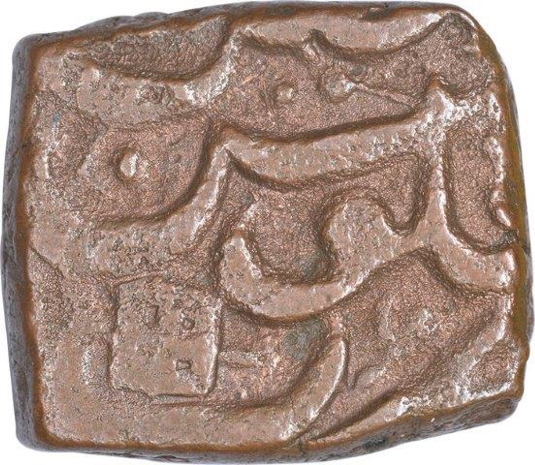 Akbar, Ujjain Mint, Copper square Tanka, Provencial Issue of Malwa Region, Obv: year in words in persian, Rev: mint name and date in persian, 6.40g,16.25 x 14.20mm, (KM # 46.1), about very fine.