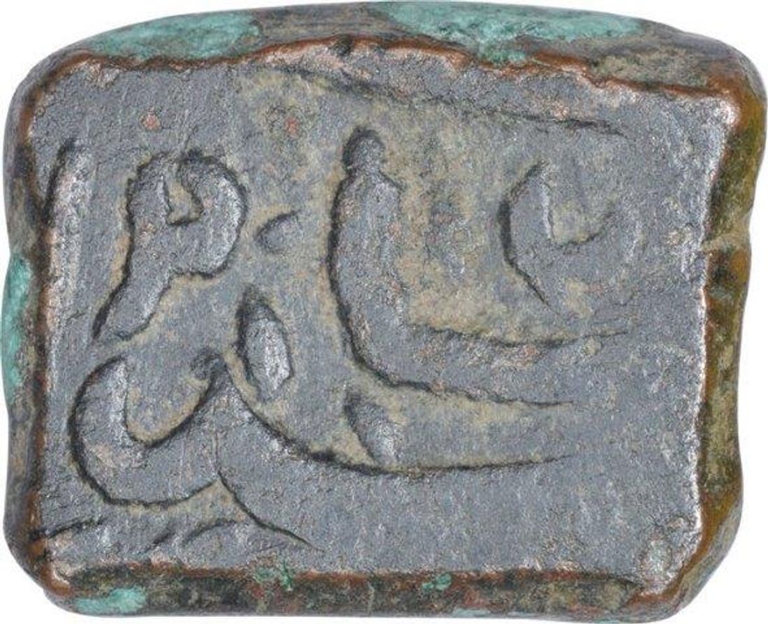 Akbar, Mintless Type, Copper Falus, Obv: jalla jalalahu allahu akbar, Rev: persian legend, 6.90g, 15.18 x 12.27mm, Unlisted variety, about extremely fine.