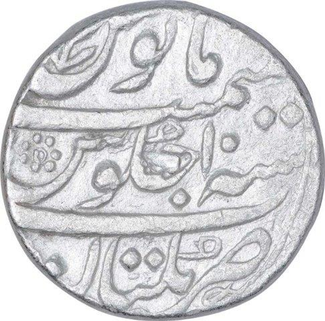 Aurangzeb Alamgir, Multan Mint, Silver Rupee, AH 1077/10 RY, Obv: badr munir couplet, Rev: sana julus zarb at bottom,mint symbol, 11.50g, 21.99mm, (KM # 300.63), about very fine.