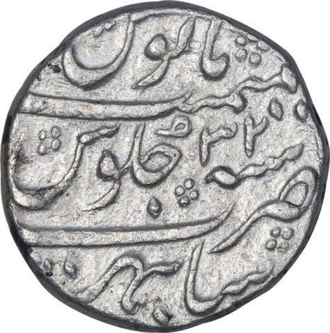 Aurangzeb Alamgir, Sambhar Mint, Silver Rupee, AH 1099/32 RY, Obv: "badr munir" couplet, Rev: sana julus zarb at bottom, 11.60g, 22.46mm, (KM # 300.79), about extremely fine, Very Rare.