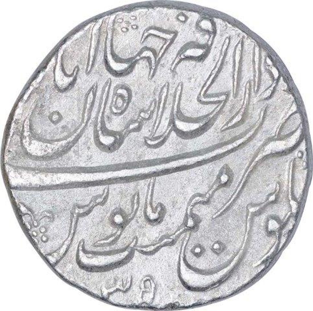 | Full Description: Aurangzeb Alamgir, Shahjahanabad Dar-Ul-Khilafat Mint, Silver Rupee, AH 1103/35 RY, Obv: badr munir couplet,Rev: sana julus zarb at top, 11.40g, 21.80mm, (KM # 300.81), about very fine. | ||||