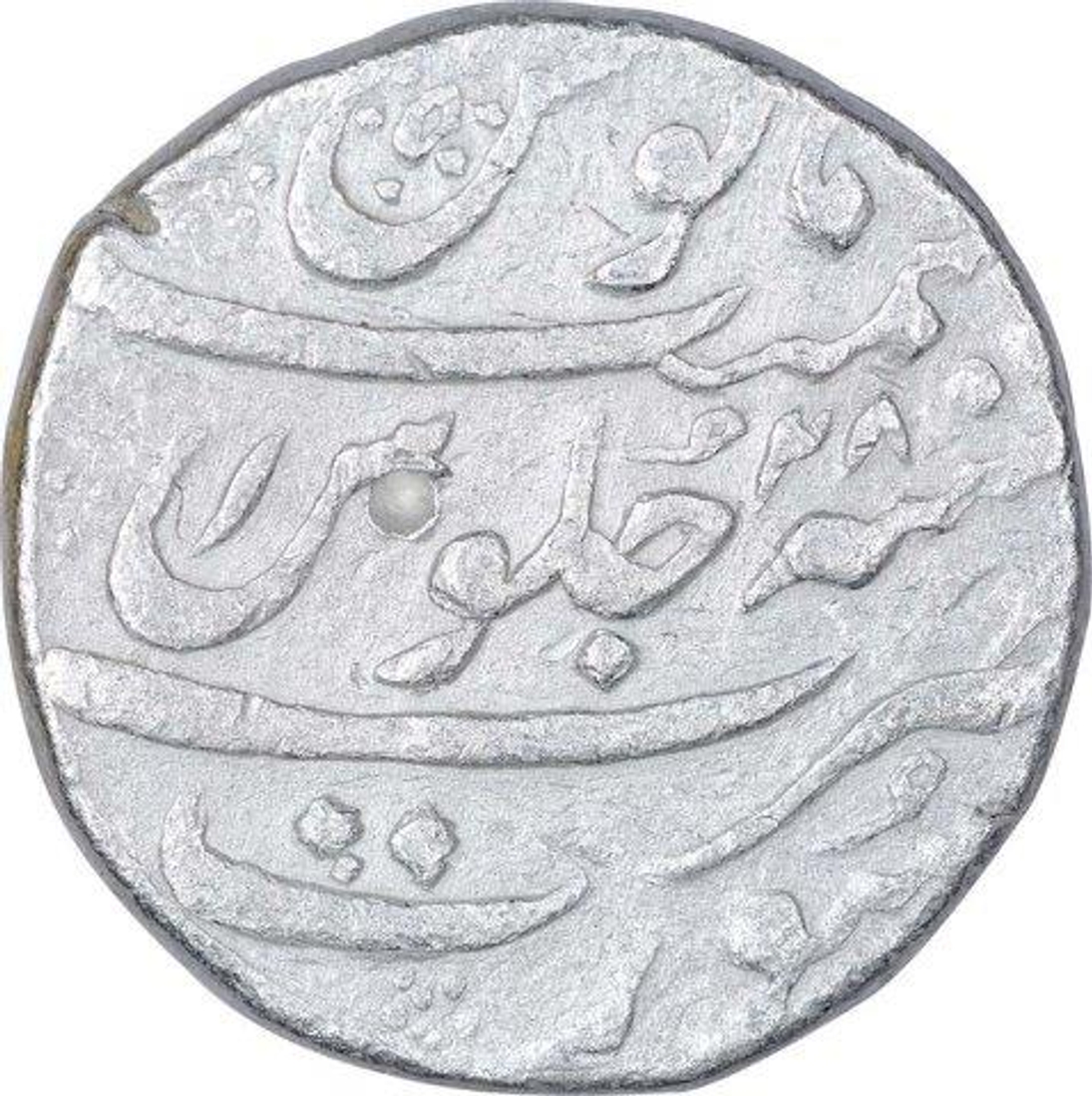 Aurangzeb Alamgir, Surat, Silver Rupee, AH 1096/28 RY, Obv: "badr munir" couplet, Rev: sana julus & zarb at bottom, 11.50g, 25.13mm, (KM # 300.86), about very fine.