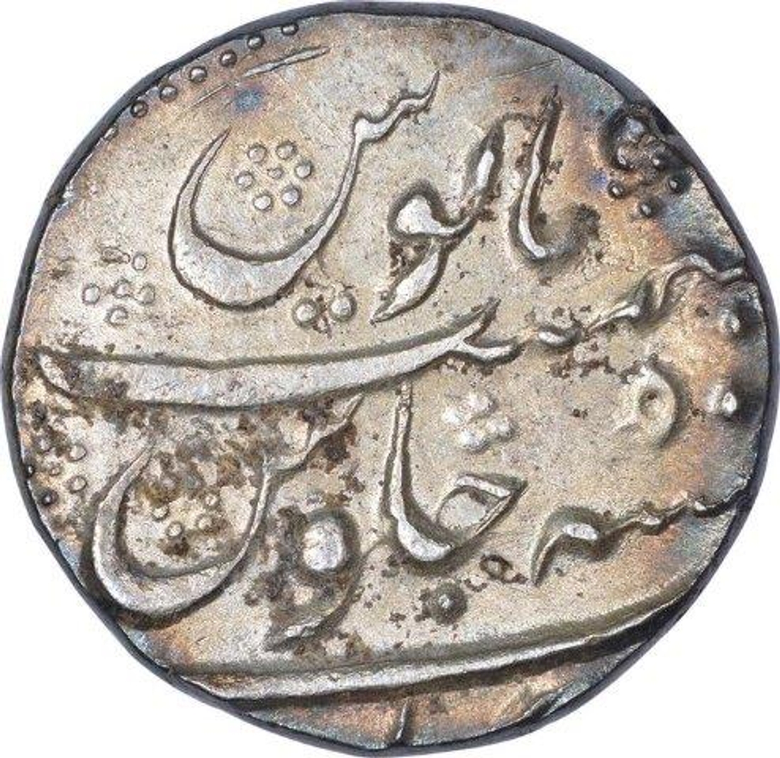 Aurangzeb Alamgir, Mint out of flan, Silver Rupee, AH 1118/50 RY, Obv: "badr munir" couplet, Rev: sana julus zarb, 11.60g, 23.12mm, about very fine, Scarce.