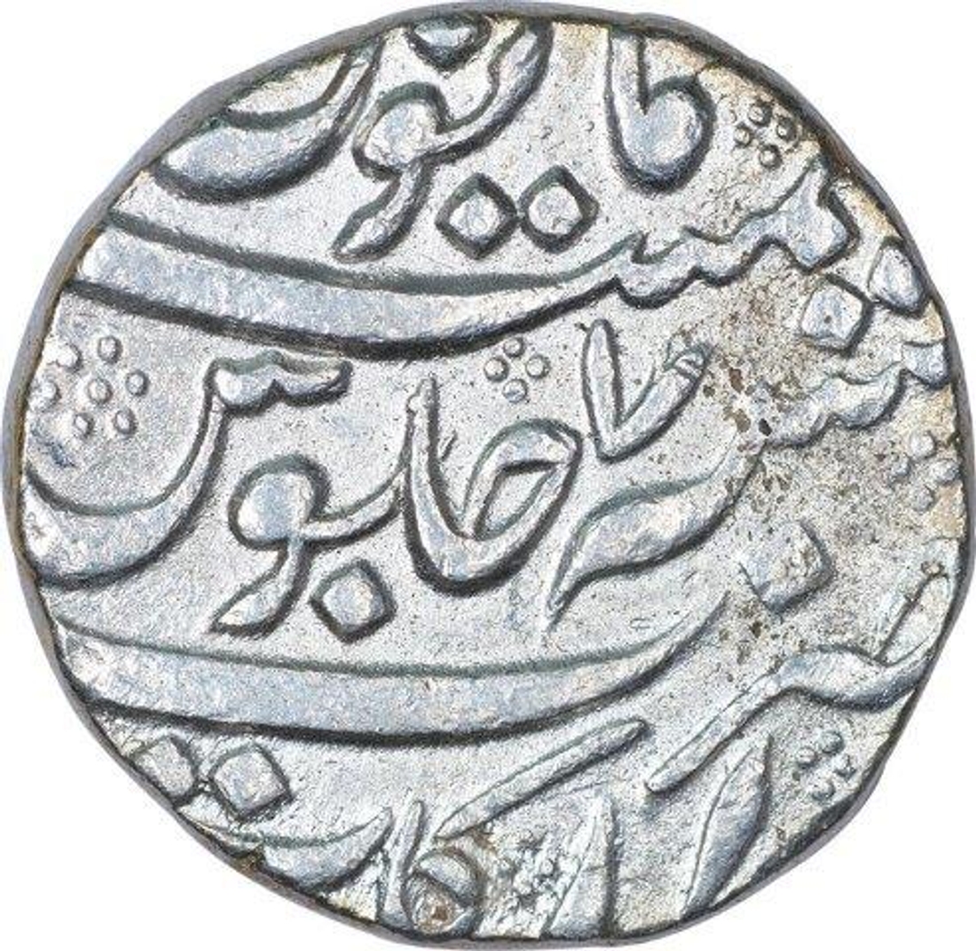 Farrukhsiyar, Arkat, Silver Rupee, AH 11XX/7 RY, Obv: badshah "bahr-o-barr" couplet, Rev: sana julus zarb & mint mark, 11.55g, 22.87mm, (KM # 377.10), about extremely fine, Rare.