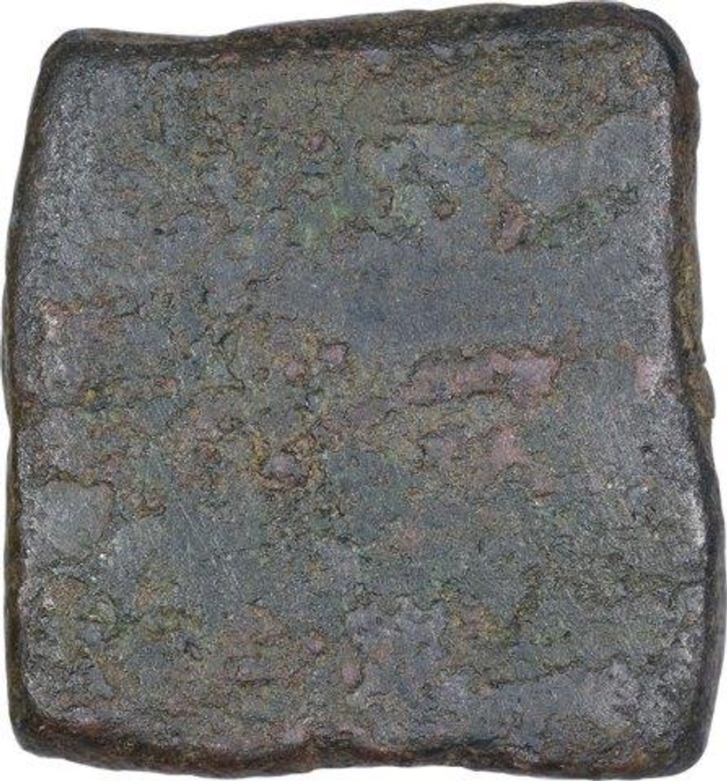 | Full Description: Kingdom of Vidarbha, Damabhadra (100 BC), Copper Unit, Obv: above on left the brahmi legend ‘Damabhadasa; in front of it, small animal, probably a dog, to right within a linear circle, below the legend, a humped bull standing to right with a line below it, Rev: uniface, 3.10g, 13.65 x 12.77mm, Ref: Nidhi Vol. I, Ajay Mitra Shastri & Chandrashekhar Gupta, about very fine. | ||||