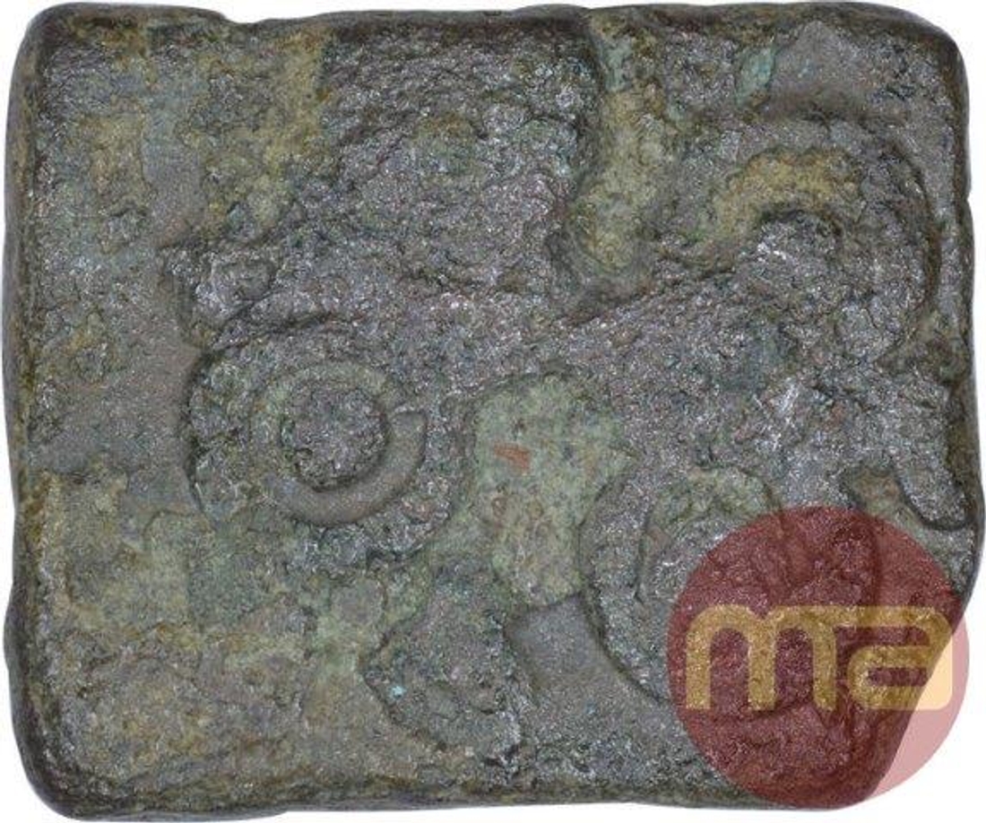 Kingdom of Vidarbha, Damabhadra (100 BC), Copper Unit, New Variety, Obv: brahmi legend in center in horizontal “(da)mabhadasa” with svastika at top and bottom, Rev: ujjaini symbol, 1.05g, 10.05 x 8.39mm, about extremely fine.