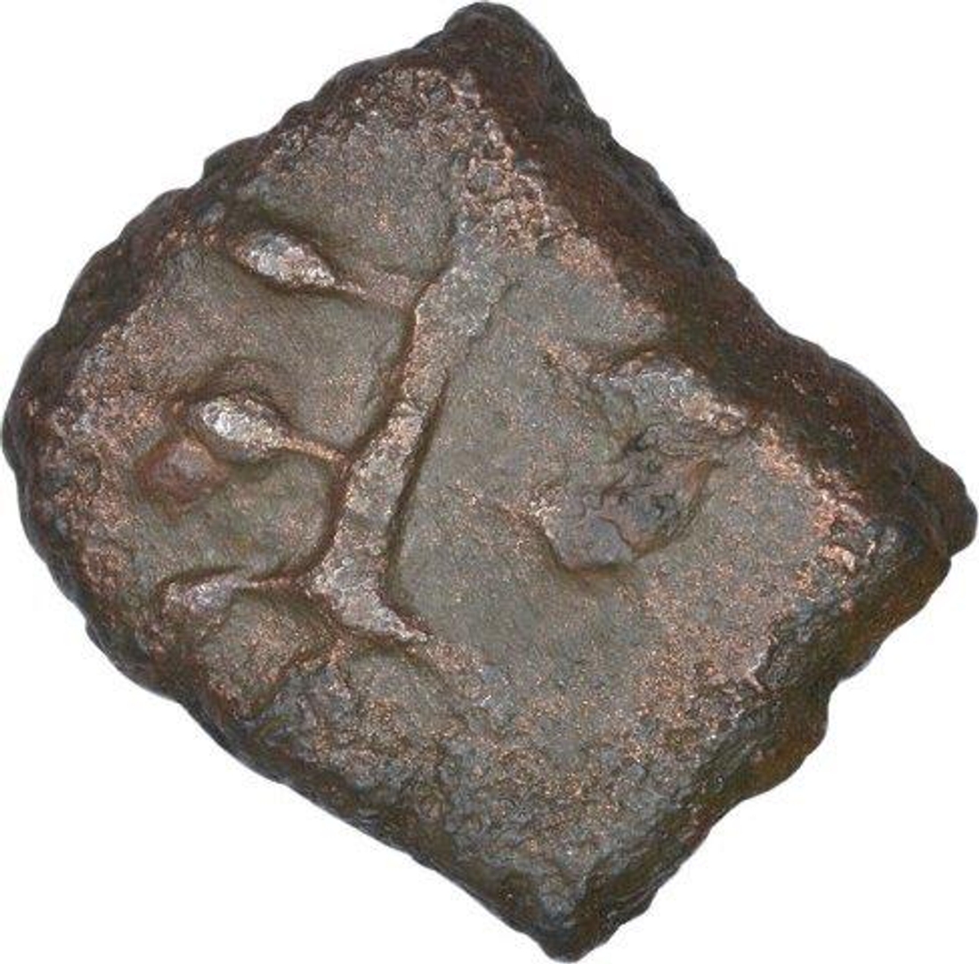 Kingdom of Vidarbha (Paunar) (100 BC), Copper Unit, Obv: indradvaja between a pair of taurine, Rev: tree railing, 0.80g, 9.17 x 7.96mm, about extremely fine.