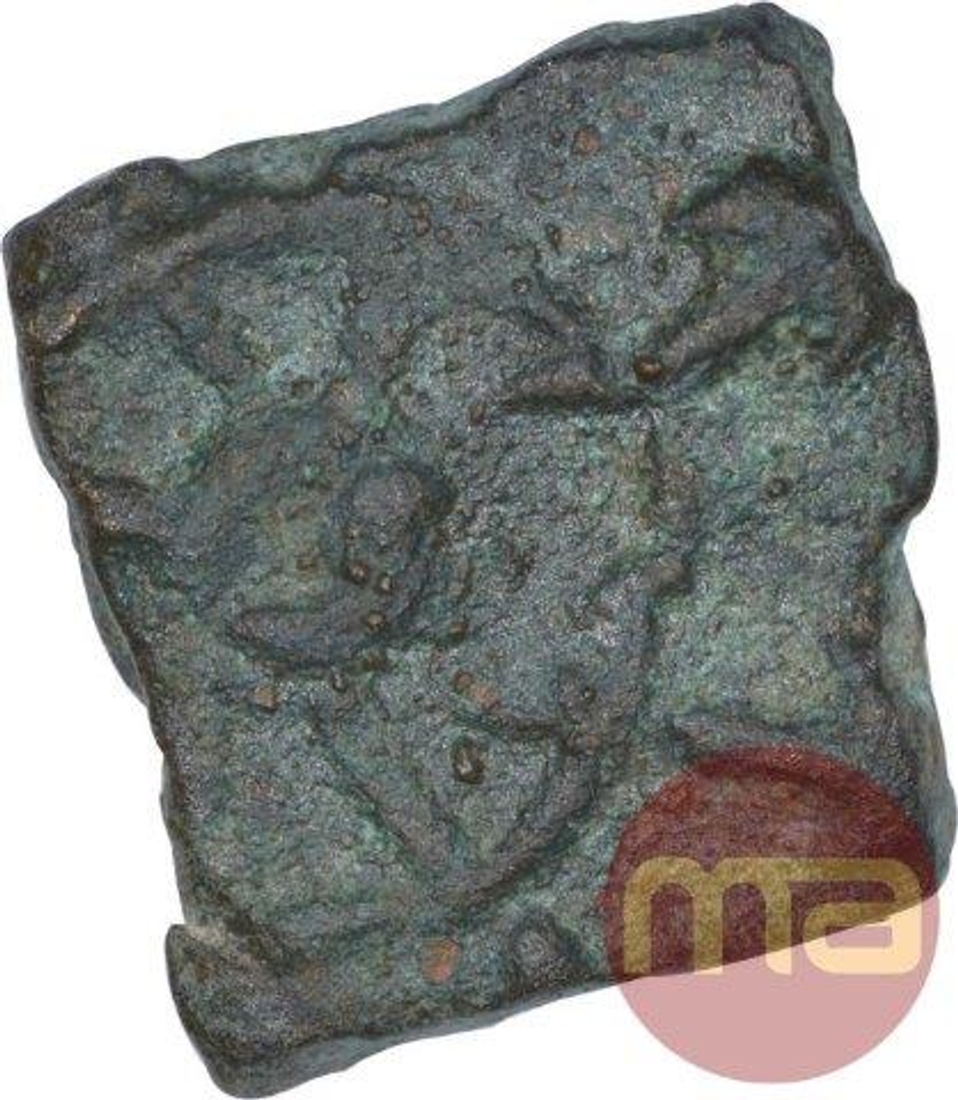 Kingdom of Vidarbha (Paunar) (100 BC), Copper Unit, Obv: elephant right with upraised trunk, spear pointing upwards above elephant, Rev: eight spoked wheel, 0.65g, 8.44 x 7.88mm, about extremely fine.