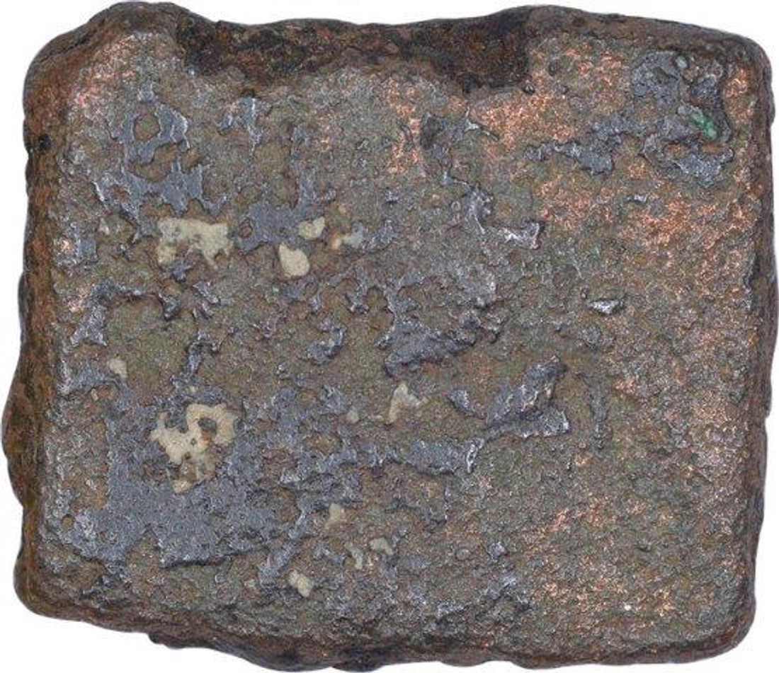 | Full Description: Kingdom of Vidarbha, Krishnamitra (100 BC), Copper Unit, Obv: ujjaini symbol top, river below with fishes, brahmi legend 'ka..namitasa in center in horizontal. Rev: uniface, 2.65g, 14.02 x 12.21mm, (Nidhi Vol. I, Ajay Mitra Shastri & Chandrashekhar Gupta), about fine. | ||||
