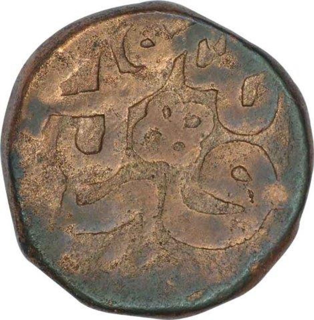 Lot # 156 - Copper Dam Coin of Akbar of Narnol Mint of Fi Tarikh Type.